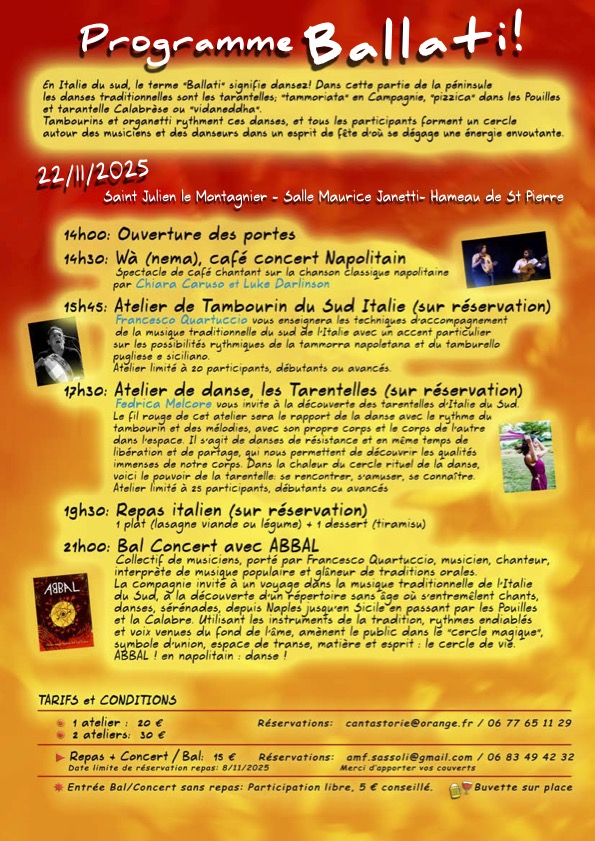 ABBAL propose un voyage musical et dansant à travers les répertoires du Sud de l’Italie (Campanie, Pouilles, Calabre).